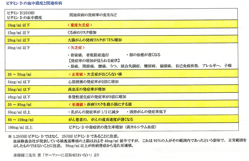 実際、今まで当院で測定した未治療の患者さんのビタミンD濃度は、ほとんどの人が低値(30ng/ml未満)を示しています。